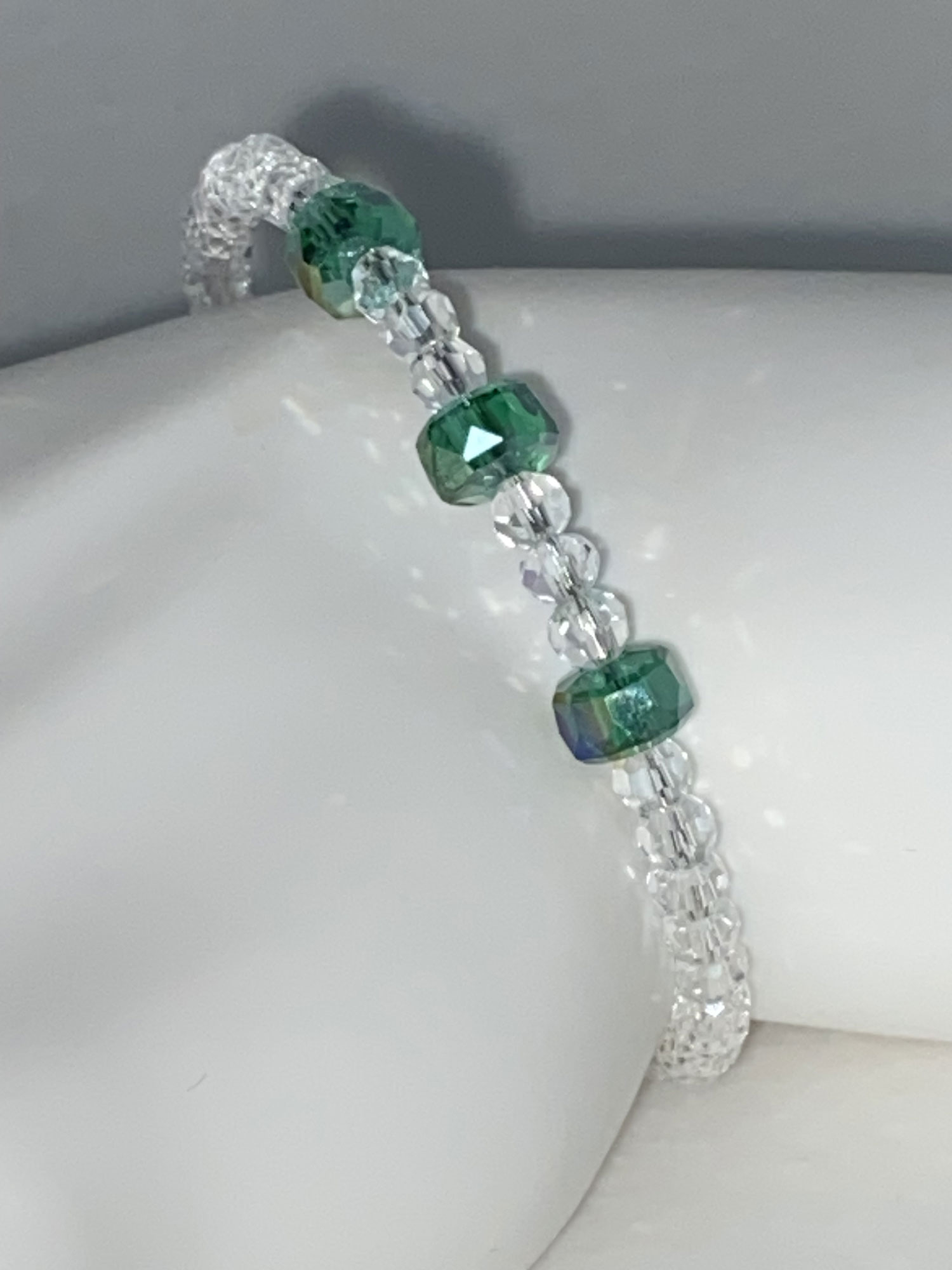 Make a statement with this stunning newly designed memory wire bracelet, expertly crafted to deliver bold, eye-catching sparkle with clear faceted glass beads and a dazzling focal centerpiece of large green AB glass beads that add maximum bling and dimension. Designed on durable memory wire for a secure, flexible fit, this bracelet comfortably wraps the wrist in a stylish layered look, perfect for everyday wear or dressing up any outfit. Sized for S/M, it offers effortless wear, lasting shine, and standout style that elevates any jewelry collection.