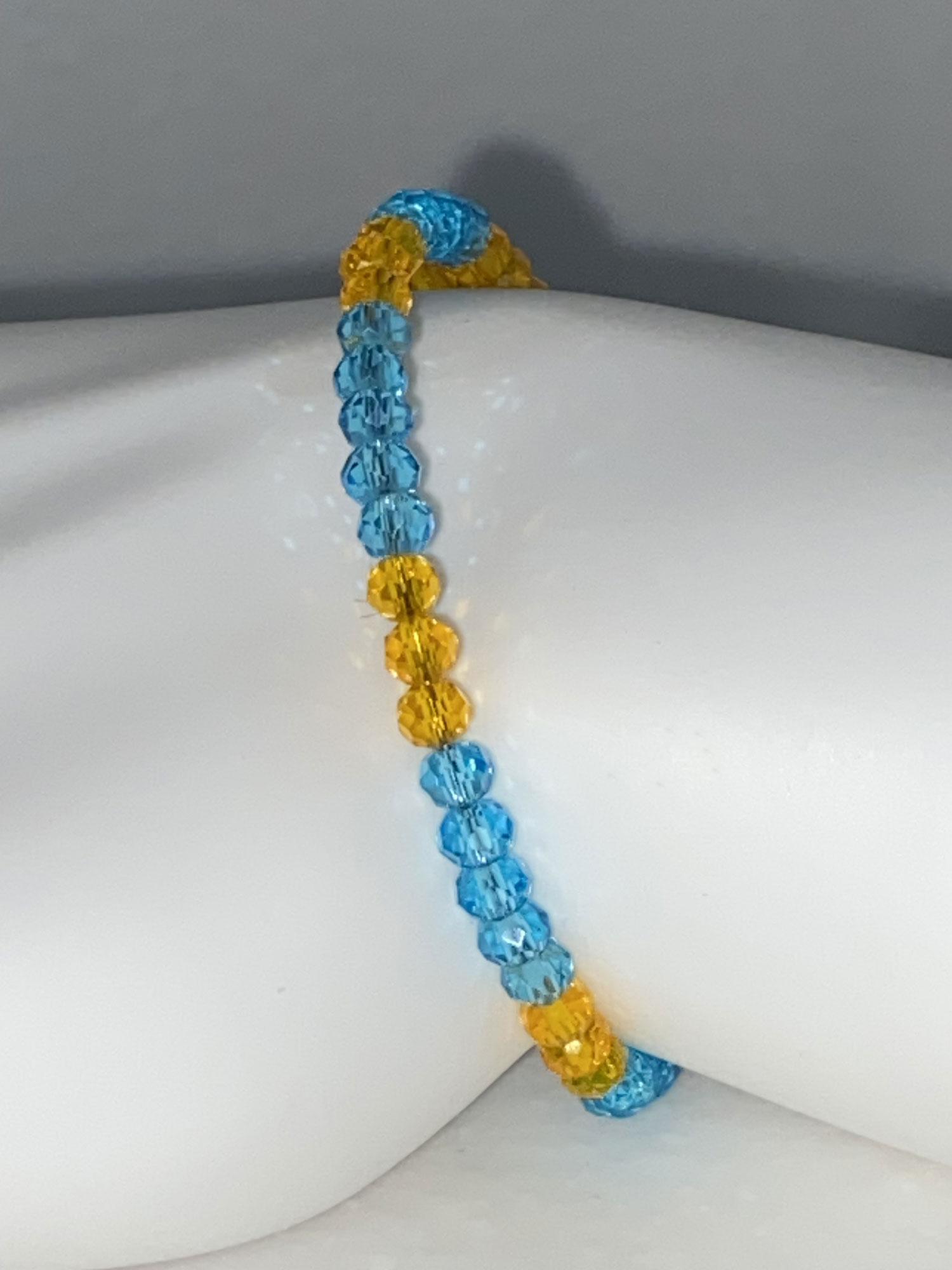 Striking and versatile, this beautifully handcrafted memory wire layering bracelets is designed with a dazzling array of 4mm sky blue & orange faceted glass rondelle beads that catch the light with every movement, effortlessly wrapping the wrist in a comfortable, layered style without the need for clasps—perfect for wearing solo or stacked for a personalized, comfortable style. Available in S/M.
