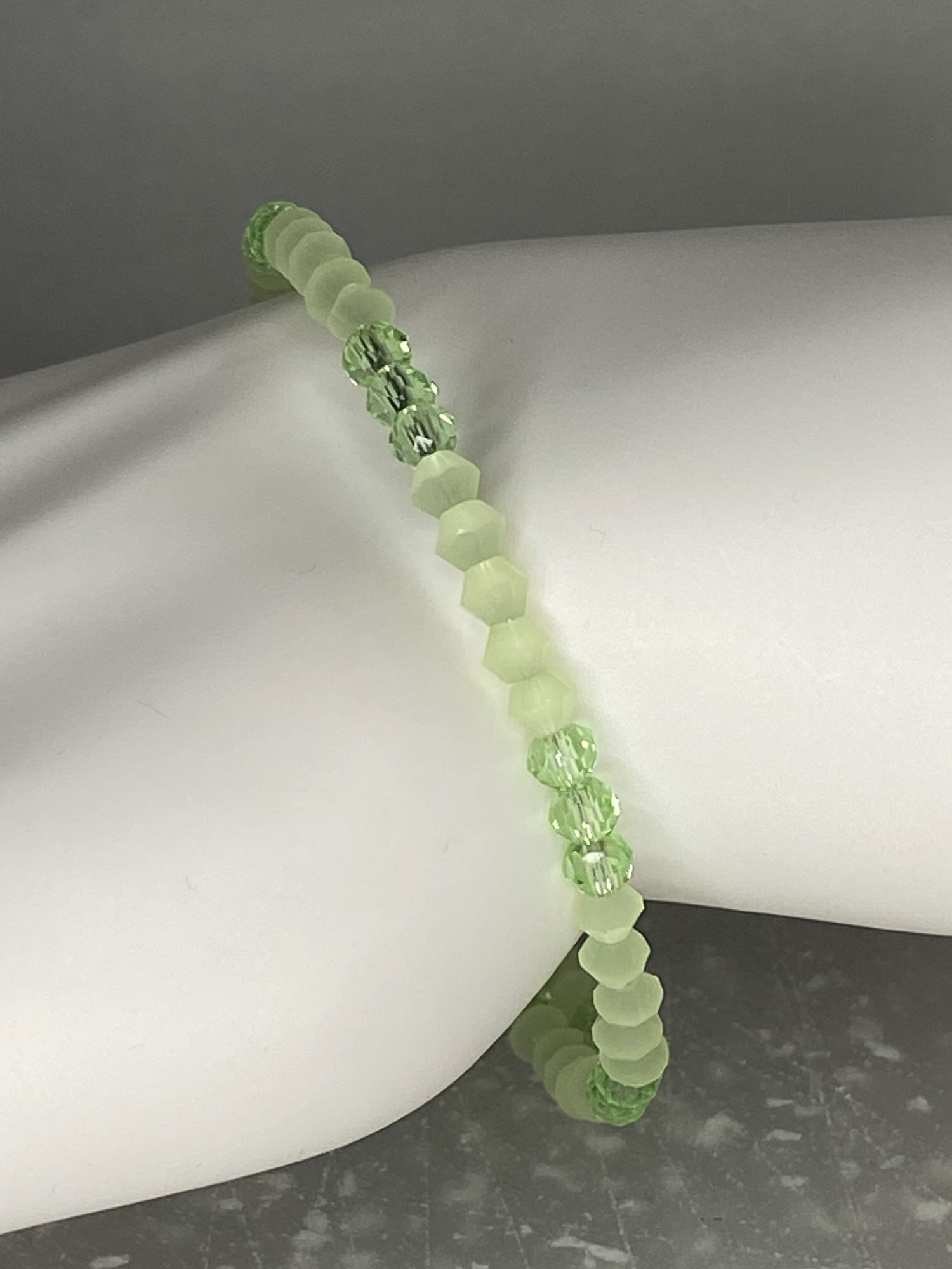 Make a statement with this stunning newly designed memory wire bracelet, expertly crafted to deliver bold, eye-catching sparkle with light green faceted bicone glass beads and a dazzling faceted light green AB rondelle glass beads that add maximum bling and dimension. Designed on durable memory wire for a secure, flexible fit, this bracelet comfortably wraps the wrist in a stylish layered look, perfect for everyday wear or dressing up any outfit. Sized for S/M wrists, it offers effortless wear, lasting shine, and standout style that elevates any jewelry collection.