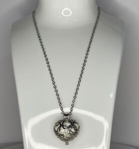 The elegant heart cage design allows the natural howlite stone to move freely, symbolizing peaceful energy and personal growth. Suspended from a durable 24″ stainless steel chain with a 3″ extension, this necklace offers adjustable comfort and everyday wear-ability. The puff heart cage is 1″ tall & 7/8″ wide.