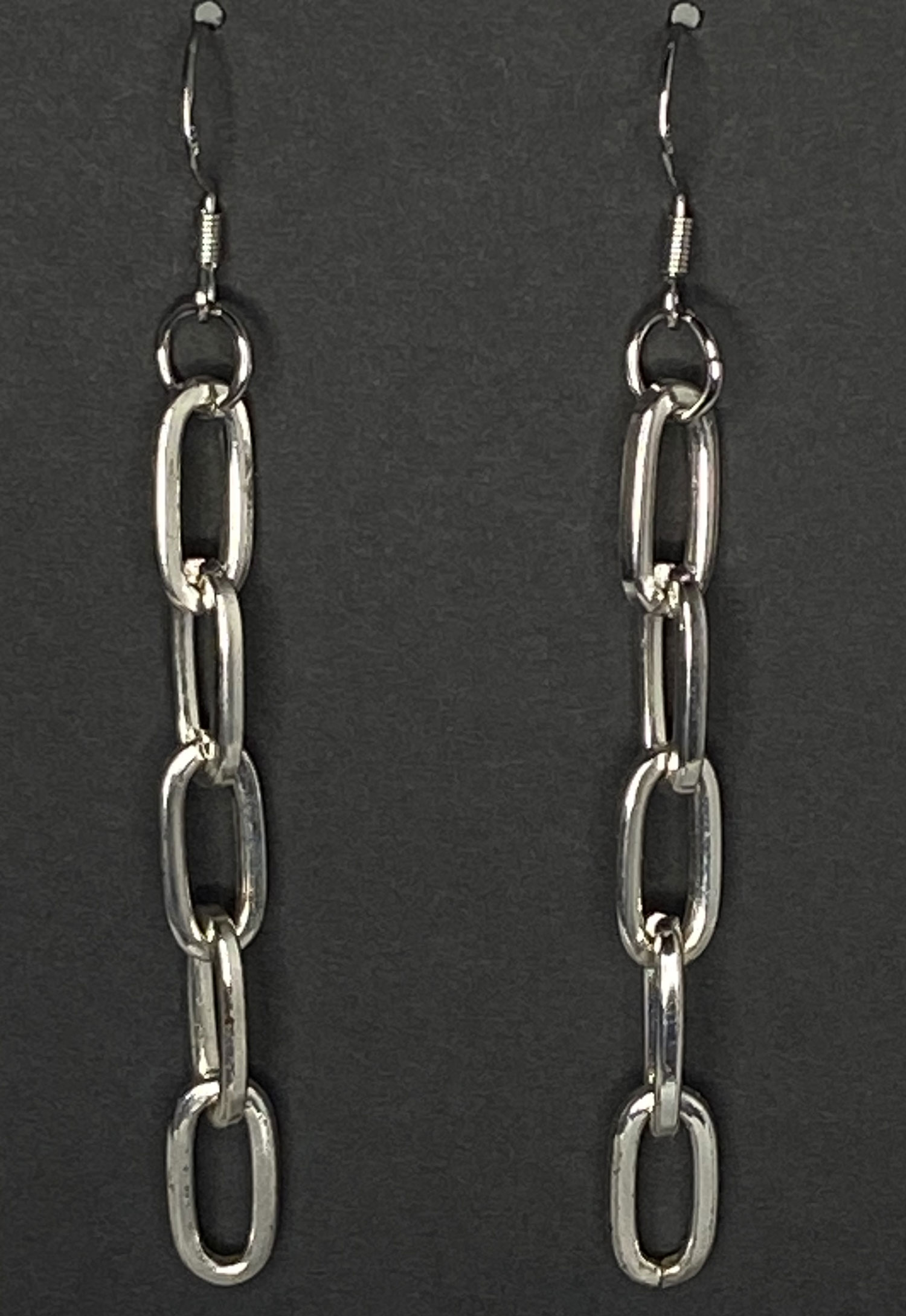 Elevate your style with these newly designed silver tone paperclip earrings. Crafted from upcycled paperclip chain and new 925 silver French ear wires. These chic dangle earrings feature a 1 3/4″ drop—perfect for everyday wear or dressing up any look.