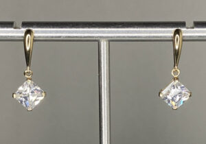 Exquisitely crafted 10K gold stamped post earrings adorned with radiant 2K cubic zirconia stones that catch the light with every movement, featuring a delicate yet eye-catching 7/8″ drop and finished with secure 10K gold backs—an elegant blend of timeless luxury, refined sparkle, and everyday sophistication perfect for elevating any look from casual to formal. The posts have been sterilized for your safety.