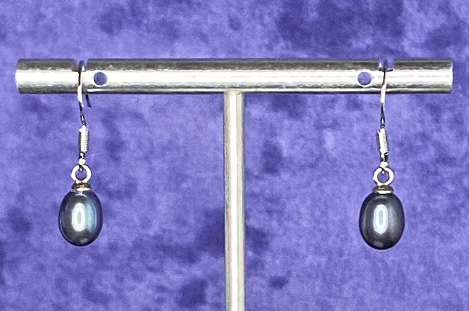 These lovely delicate pre-owned freshwater pearl earrings have new 925 silver ear wires, a 1″ drop and 1/4″ at widest.